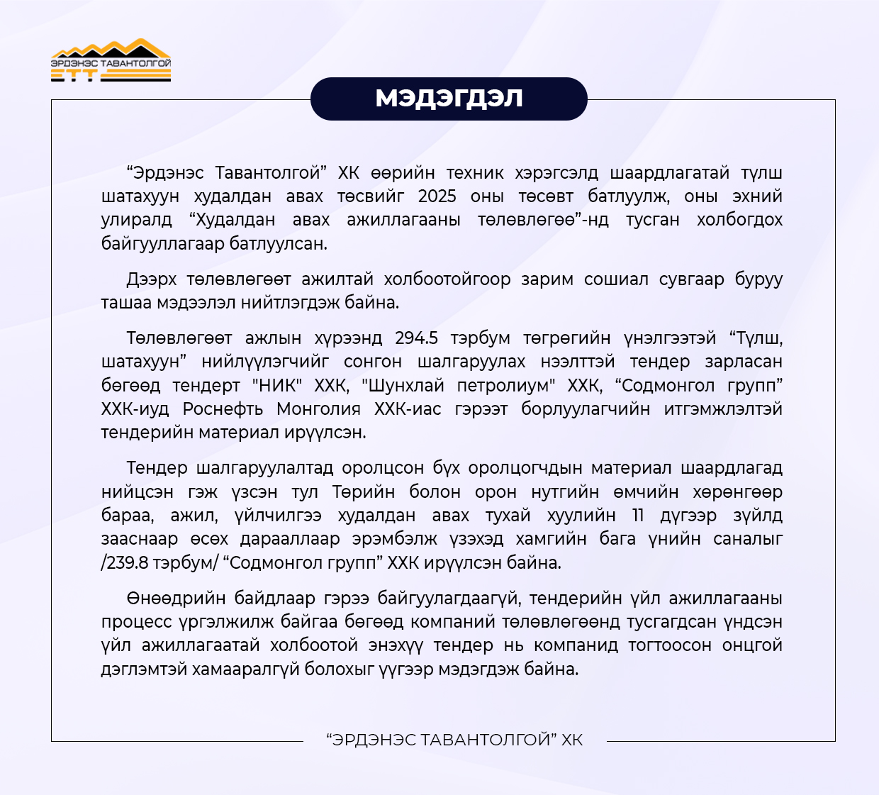 "Эрдэнэс таван толгой" ХК сошл сувгаар яван зарим ташаа мэдээлэлтэй холбогдуулж мэдэгдэл гаргалаа. <img class="alignnone size-full wp-image-21323" src="https://elive.mn/new/wp-content/uploads/2025/09/download-6.jpg" alt="" width="1240" height="1121" />