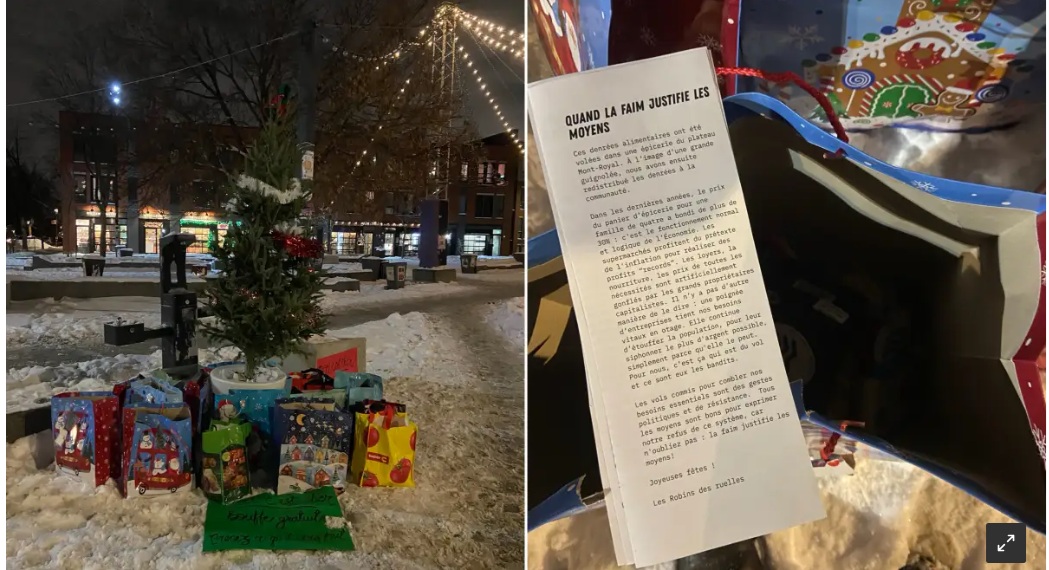 Санта нар Монреалын супермаркет руу орж, цүнхэндээ олон мянган долларын хүнсний бараа чихэж зугатсан хэрэг Канадад гарчээ. Тодруулбал, Санта Клаус болон анаахайн хувцастай хэсэг хүмүүс Монреалын нэгэн супермаркетаас тэрэг дүүрэн хүнс хулгайлсан байна. Тэд хоол хүнсийг хэрэгцээтэй хүмүүст өгөхөөр Робин Гудыг дуурайж ийм үйлдэл хийсэн гэж өөрсдийгө өмөөрчээ. Мөн канадуудын өдөр тутмын хэрэгцээний хэрэгцээт зүйлс, амьдралын өртөг эрс нэмэгдэж байгааг эрх баригчдад мэдрүүлэх зорилготой байсан хэмээжээ.