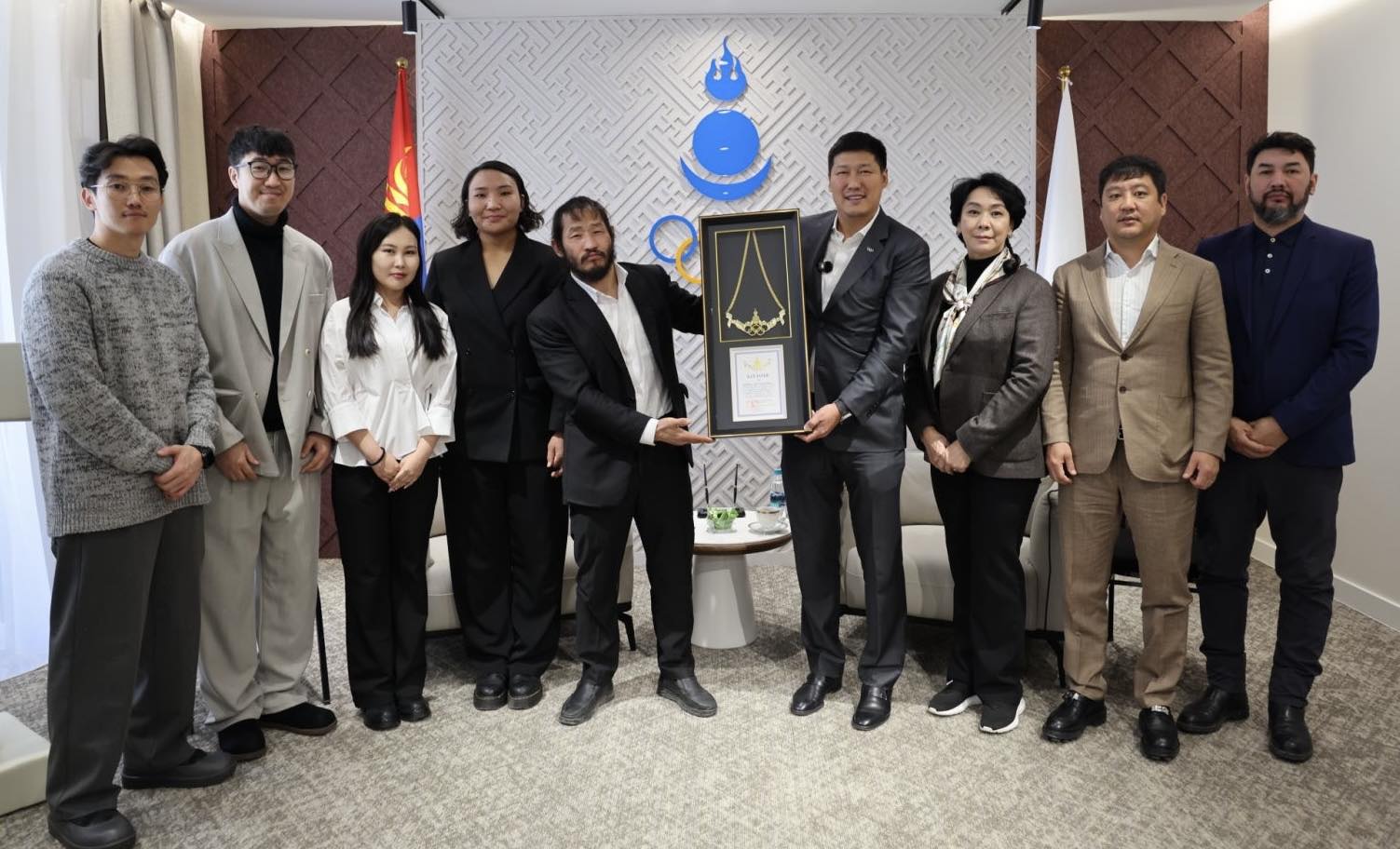 Дэлхийн тэргүүлэгч стриминг платформ Нетфликсээс зохион байгуулсан “Physical Asia” шоунд Ази тивийн 8 улсын баг тамирчидтай хүч чадал, тэсвэр хатуужлаа сорин өрсөлдөж дэд байрт шалгарсан Монголын баг, тамирчдад МҮОХ-ны дээд шагнал “Алтан од” одонг Олон улсын Олимпын хорооны гишүүн, Монголын Үндэсний Олимпын хорооны Ерөнхийлөгч Б.Баттүшиг, ерөнхий нарийн бичгийн дарга Э.Бадар-Ууган нар гардууллаа.