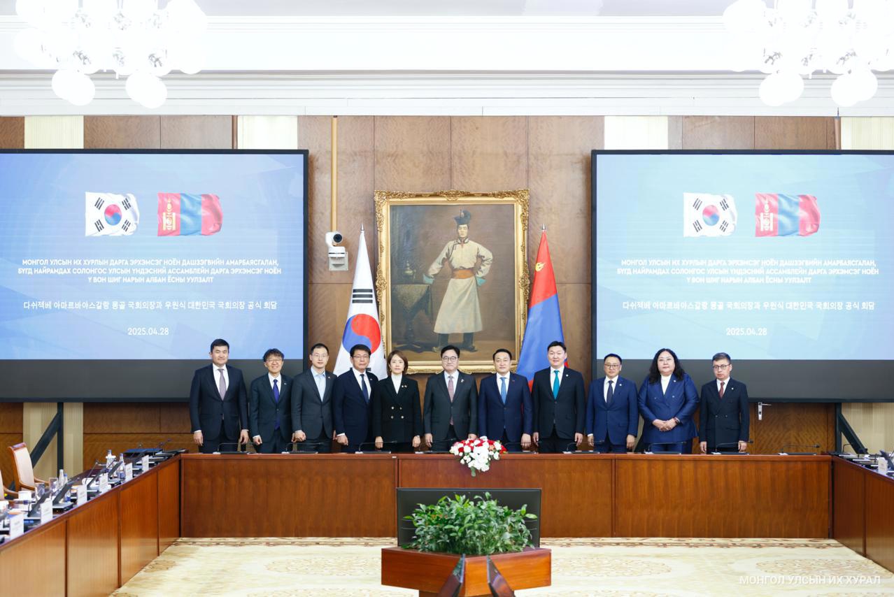 Монгол Улсын Их Хурлын дарга Д.Амарбаясгалан Монгол Улсад албан ёсны айлчлал хийж буй Бүгд Найрамдах Солонгос Улсын Үндэсний Ассамблейн дарга Ү Вон Шигтэй өнөөдөр /2025.04.28/ Төрийн ордонд албан ёсны уулзалт хийлээ.